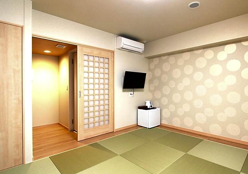 The triple room includes a private bathroom, well-fitted with a bath, a shower, a bidet, a hairdryer and slippers. The triple room features air conditioning, tatami, a wardrobe, an electric kettle, as well as a flat-screen TV. The unit has 4 futons.